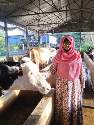 Today, Asma runs a thriving dairybusiness with 18 cattle producing up to 90 kg of milk a day, earning 1.2million BDT in annual profit, employing two local workers, and owning 48decimals of land and a market shop. Her success funds her eldest son’s engineeringdegree, supports her younger son’s schooling, and provides regular meals for 10orphans in her community.